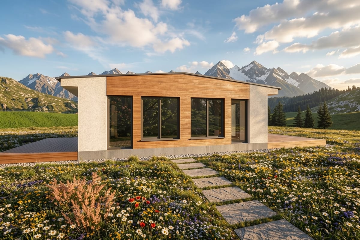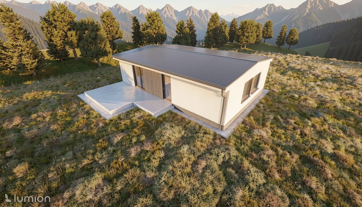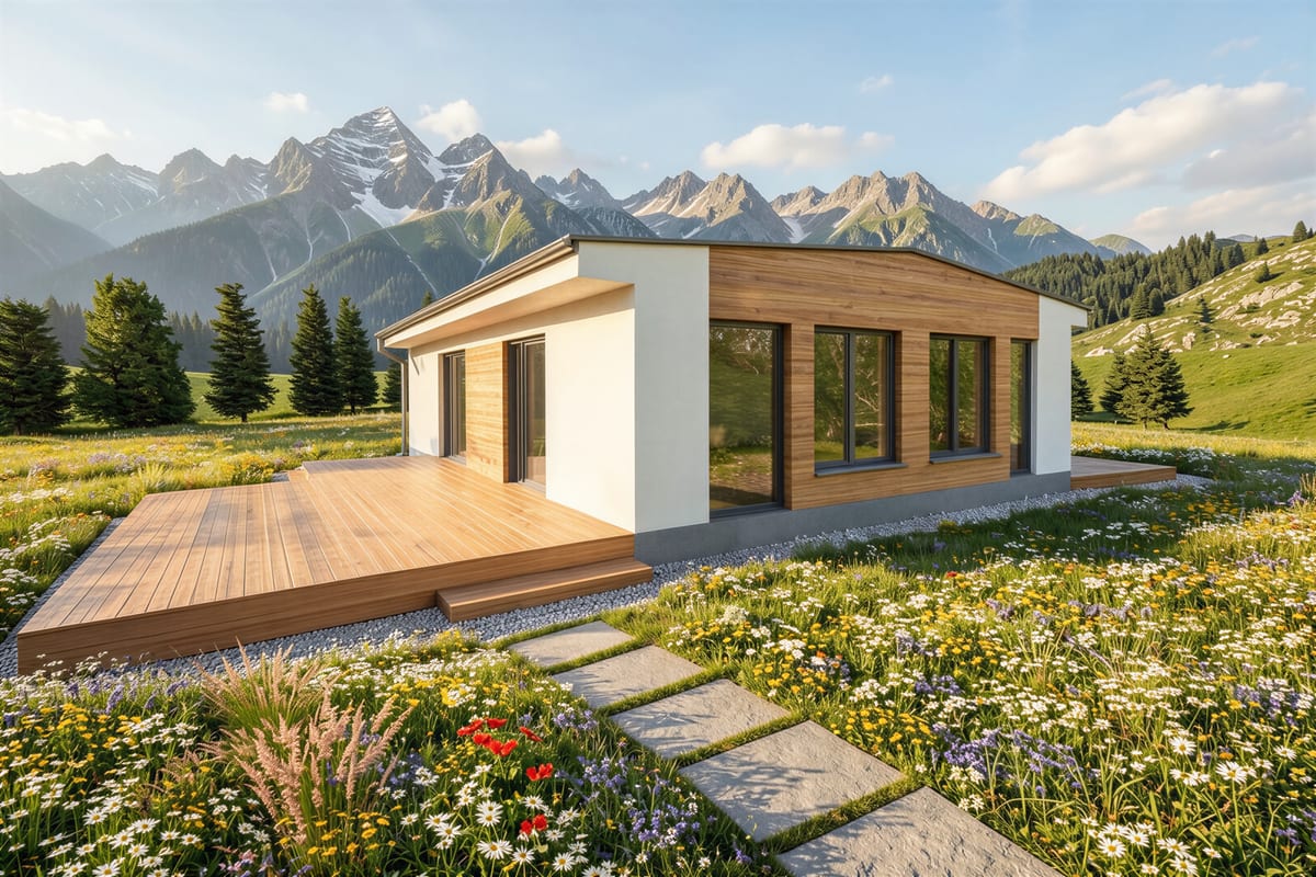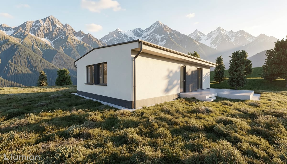 Modulární dům se dvěma samostatnými bytovými jednotkami. Každá s obývacím pokojem, ložnicí a koupelnou — ideální pro vícegenerační bydlení nebo pronájem.