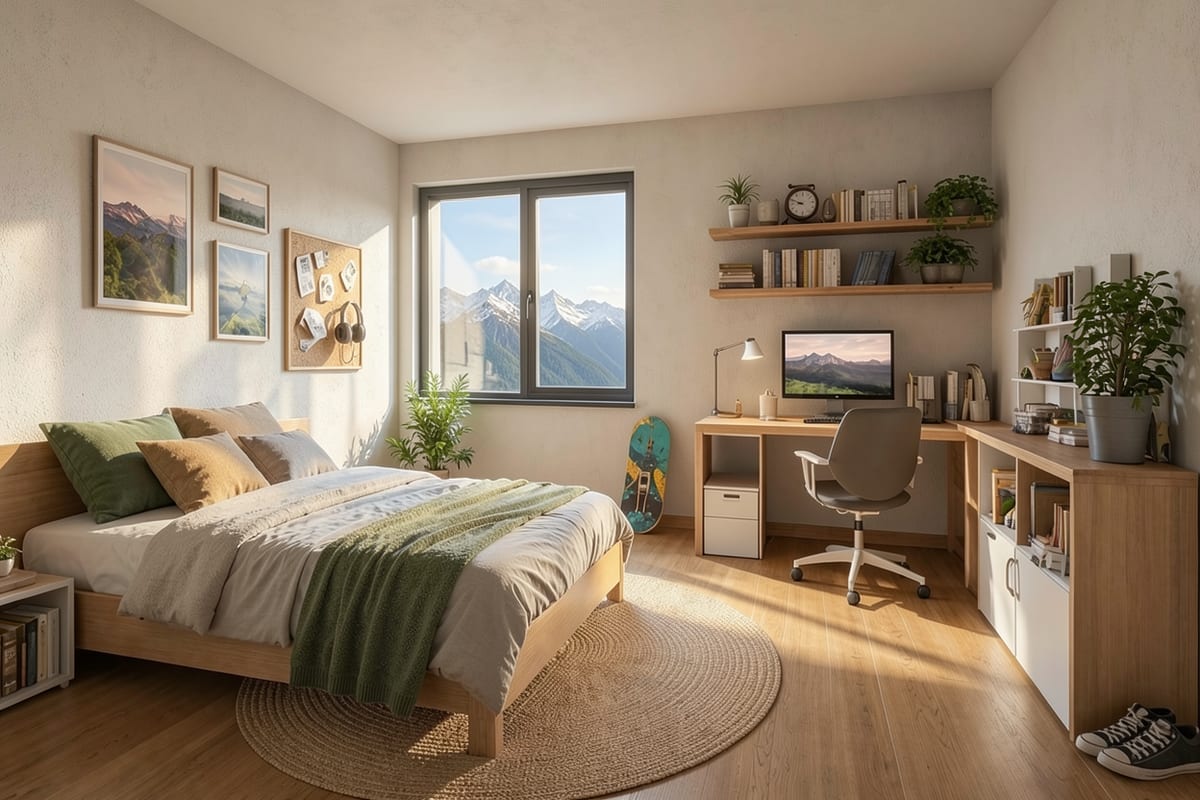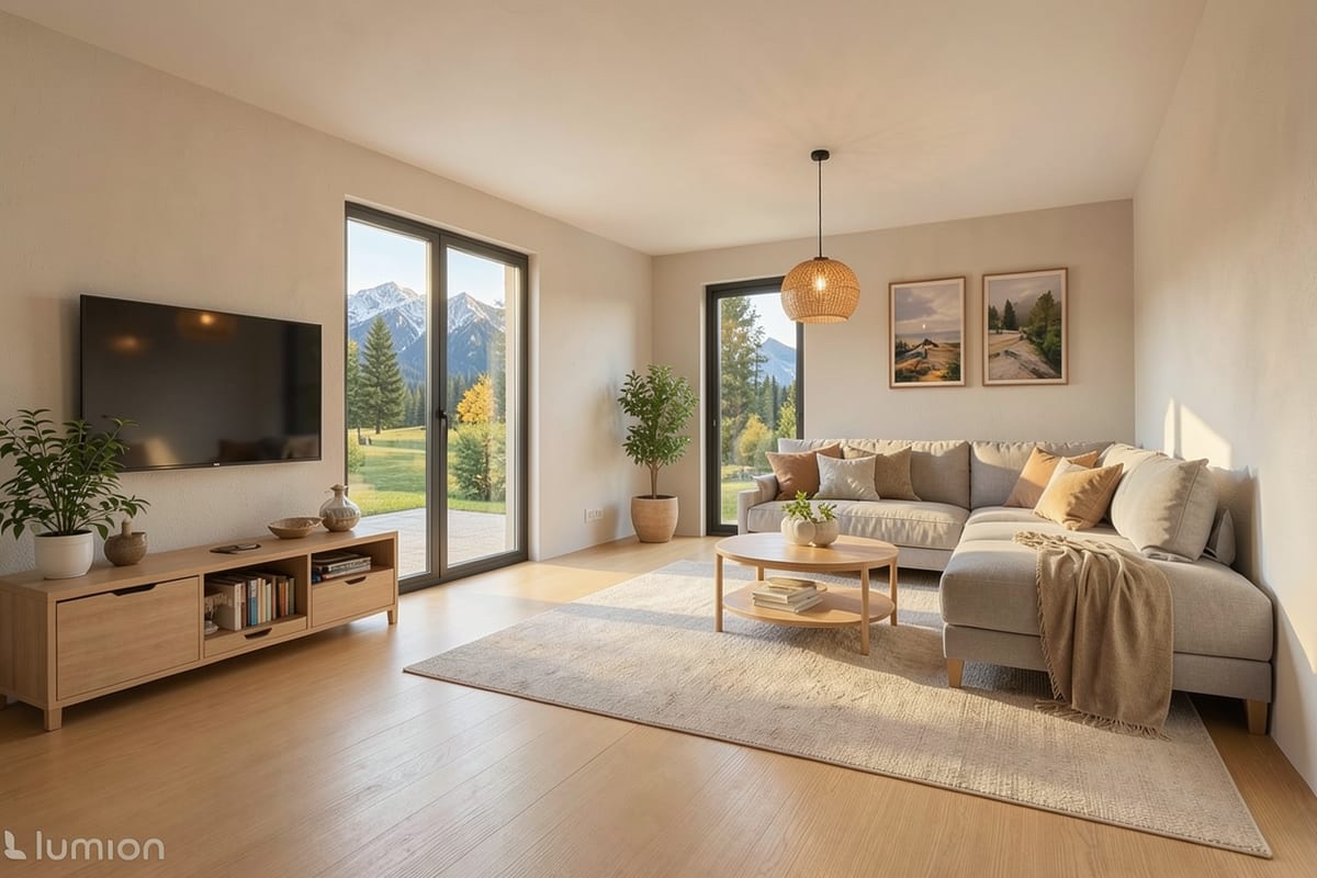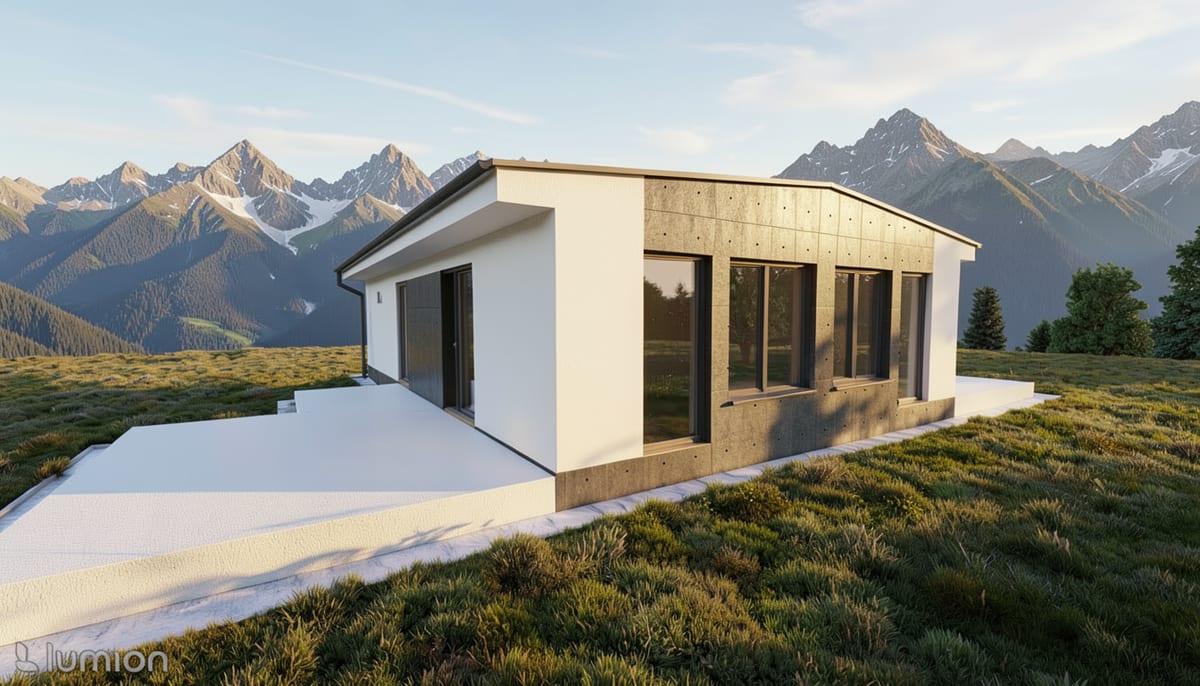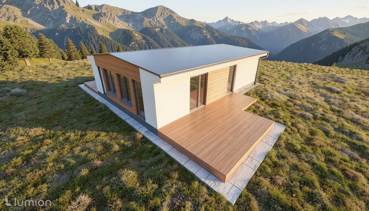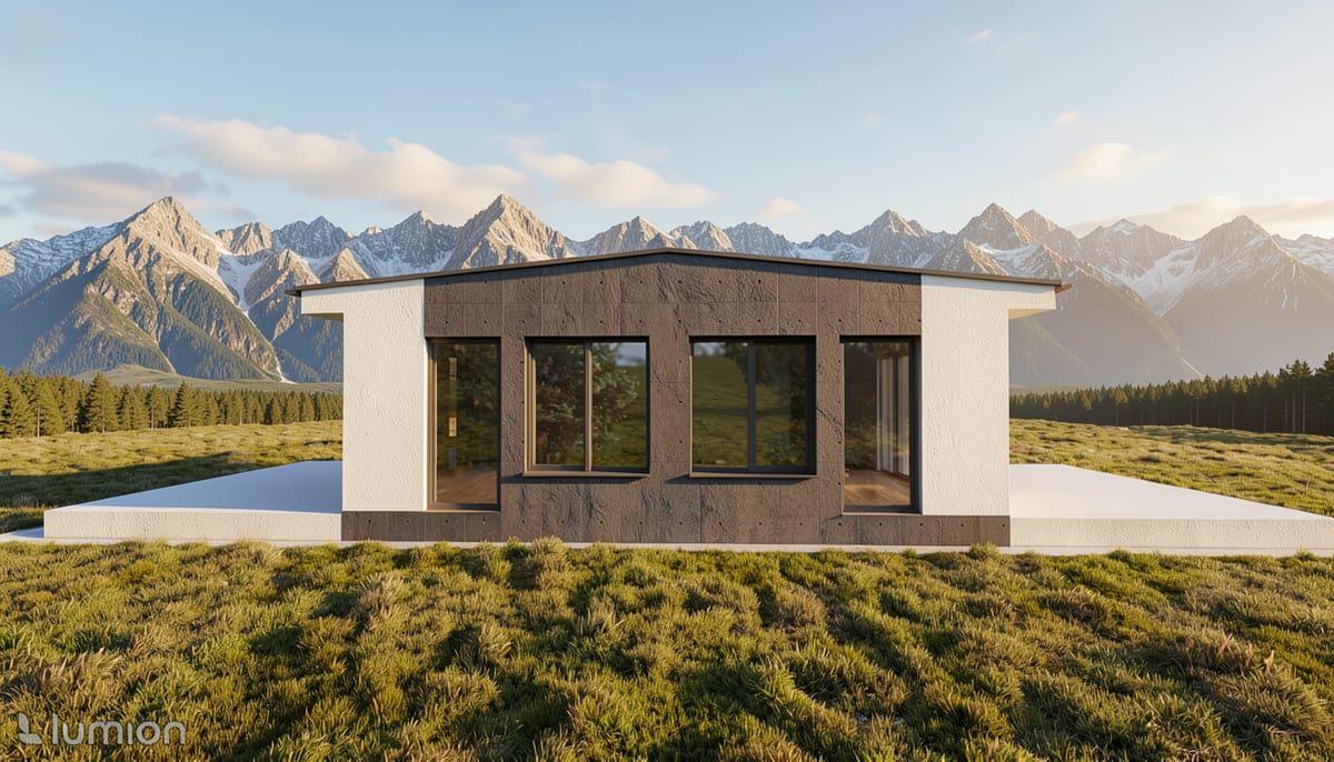 Modulární dům se dvěma samostatnými bytovými jednotkami. Každá s obývacím pokojem, ložnicí a koupelnou — ideální pro vícegenerační bydlení nebo pronájem.