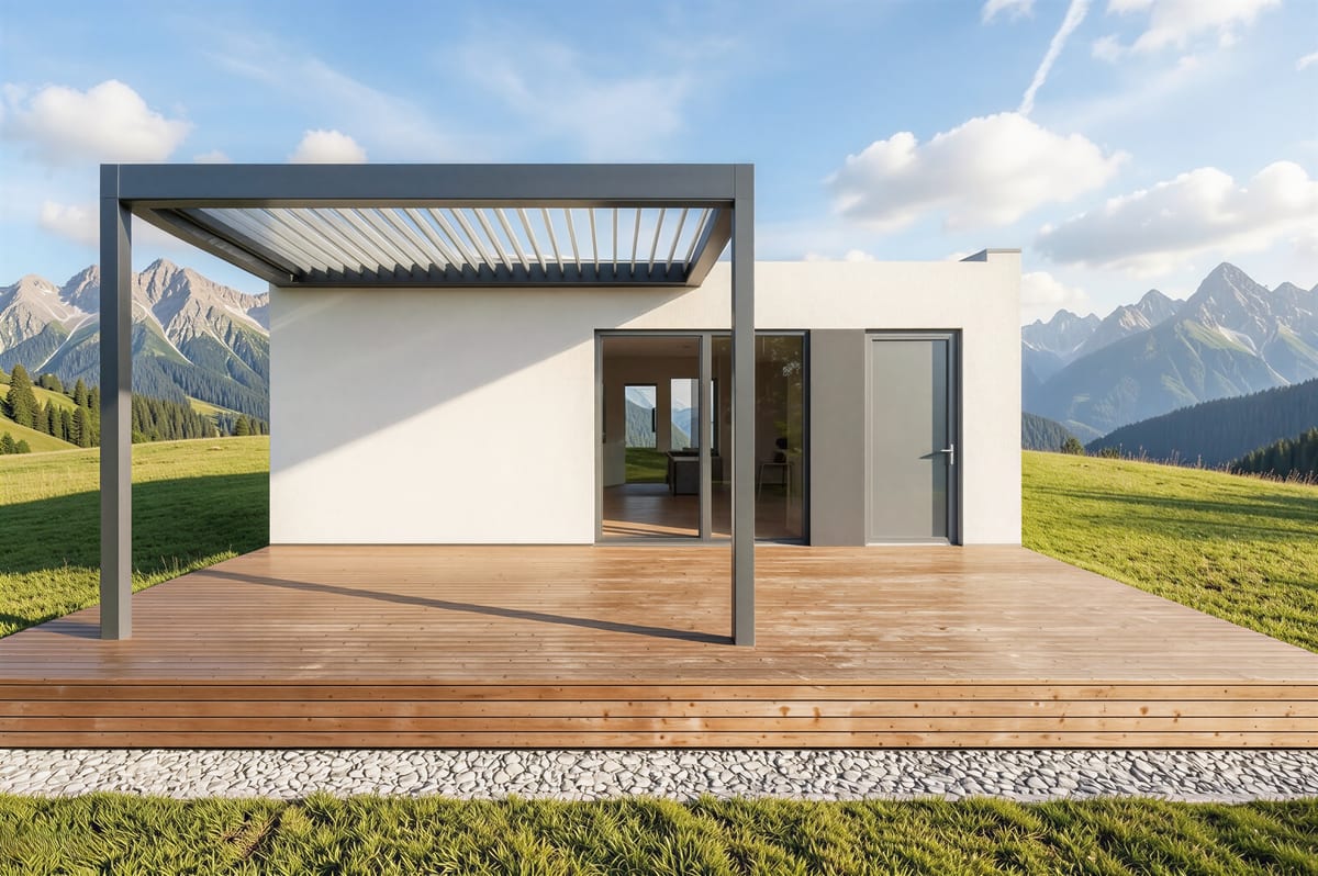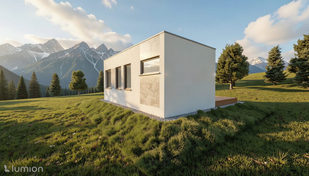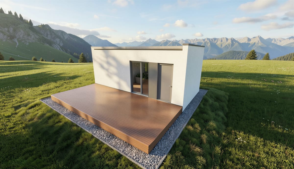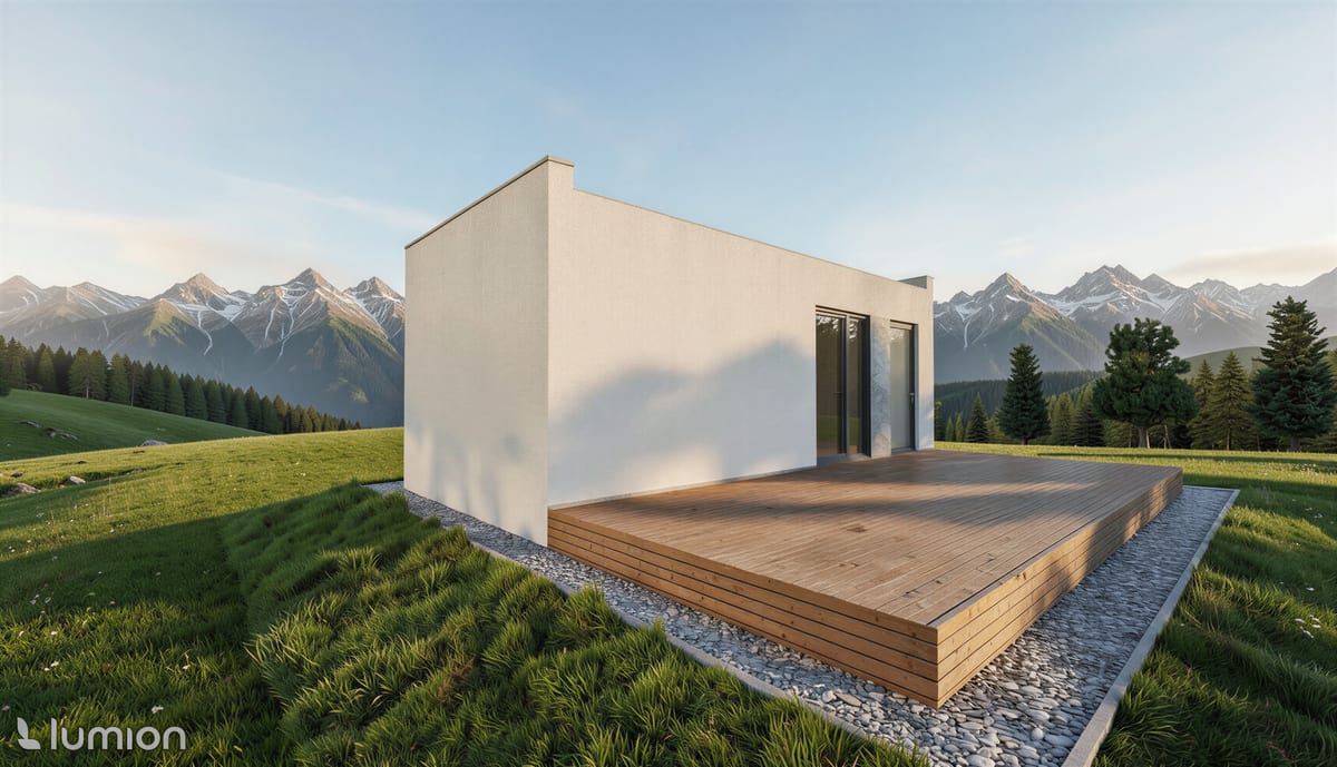 Malý, ale chytrý dům s prostorným obývacím pokojem a samostatným pokojem. Ideální pro jednotlivce, pár nebo jako startovací bydlení.